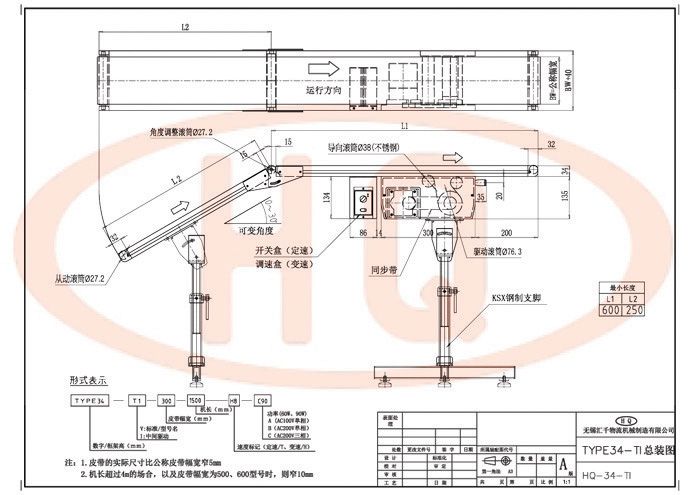 產(chǎn)品名稱:34型傾斜皮帶輸送機