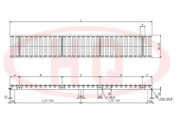 | 型 號 | 滾筒外徑(φ)×壁厚(t) 軸承 | 軸外徑(φ)×壁厚(t) 加工 | 支架形狀I×K×t 輸送機高(H) | 機  長 L | 滾筒幅 寬 W | 滾筒間隔 P | 轉彎半徑 R | ||||||